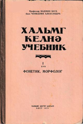 Бадмин, Б. Б. Хальмг келнә учебник. 1хүв. Фонетик, Морфолог: дунд школын 5 - 6-гч класст дасх дегтр : [на калмыцком языке] / Б. Бадмин, А. Ченкалин. – 1-гч һарц. – Элст : Хальмг дегтр һарһач, 1971. – 135, [1]с.– Текст (визуальный) непосредственный.