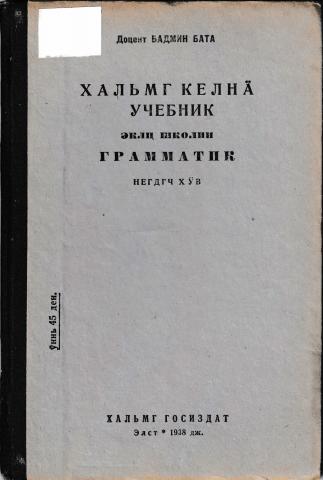 Бадмин Б.Б. Хальмг келнä грамматик: эклц школин учебник. негдгч хÿв. 1-гч болн 2-гч классмуд/ Б. Б. Бадмин. - Элст: Хальмг гос. издат-в, 1938. - 61 с.: ил. - Текст (визуальный) непосредственный.